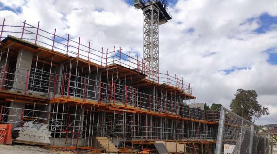 Building 1: Level 1, Formwork and slabs Building 2&3 : Ground Level Formwork and slabs Building 4: Basement and Lower ground. Crane NO. 3 has been installed.